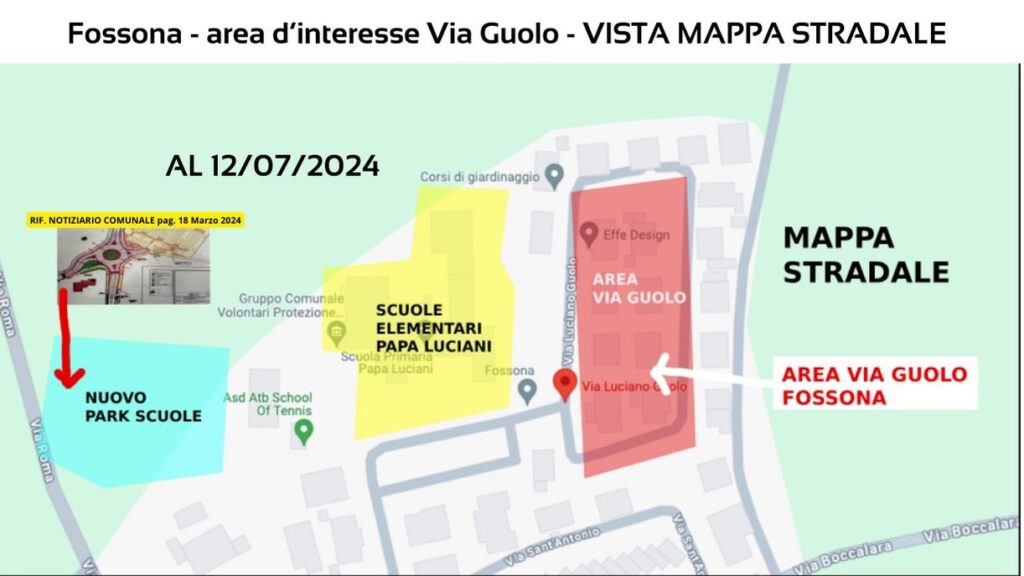Aree evidenziate d’interesse (Via Guolo, Scuola Papa Luciani, futura area parcheggio).
