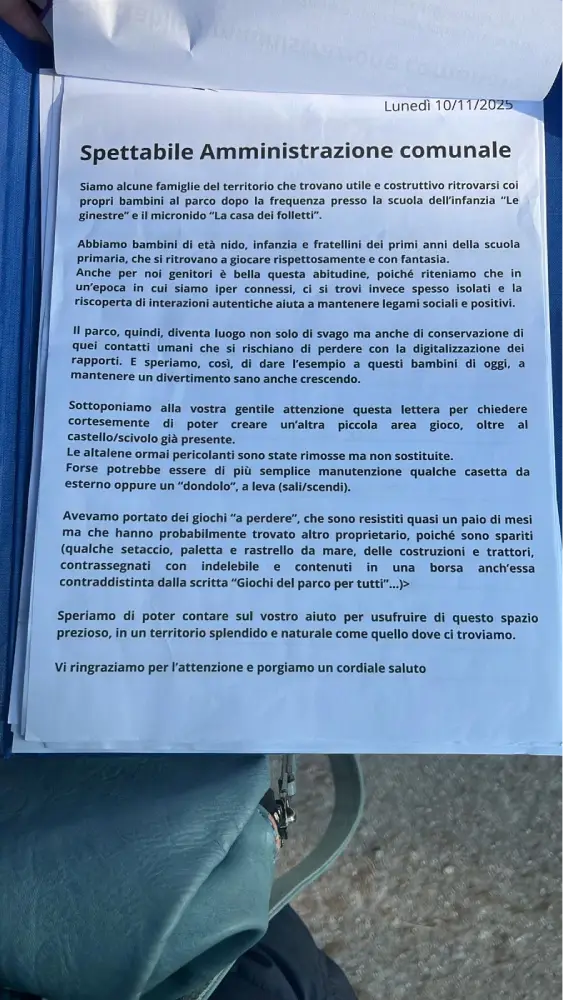 Si potrebbe pensare anche al coinvolgimento dei cittadini, attraverso giornate di volontariato in cui collaborare con il Comune, oppure a progetti partecipativi per la riqualificazione dei parchi, magari coinvolgendo scuole e associazioni locali. Senza dimenticare accessibilità e inclusione, creando spazi adatti a bambini e persone con disabilità. In molti Comuni italiani, iniziative di questo tipo hanno già portato risultati concreti. Con un po’ di impegno e collaborazione, anche il nostro paese potrebbe restituire ai più piccoli ciò che meritano: luoghi sicuri, puliti e pieni di vita.